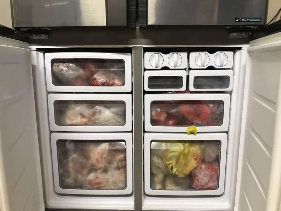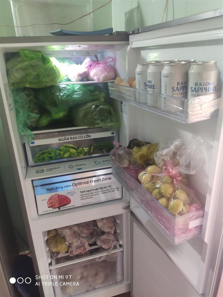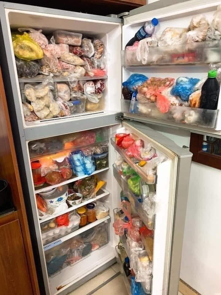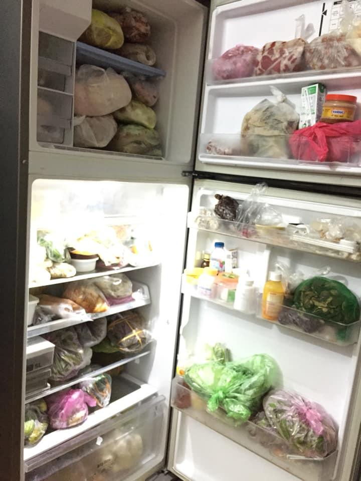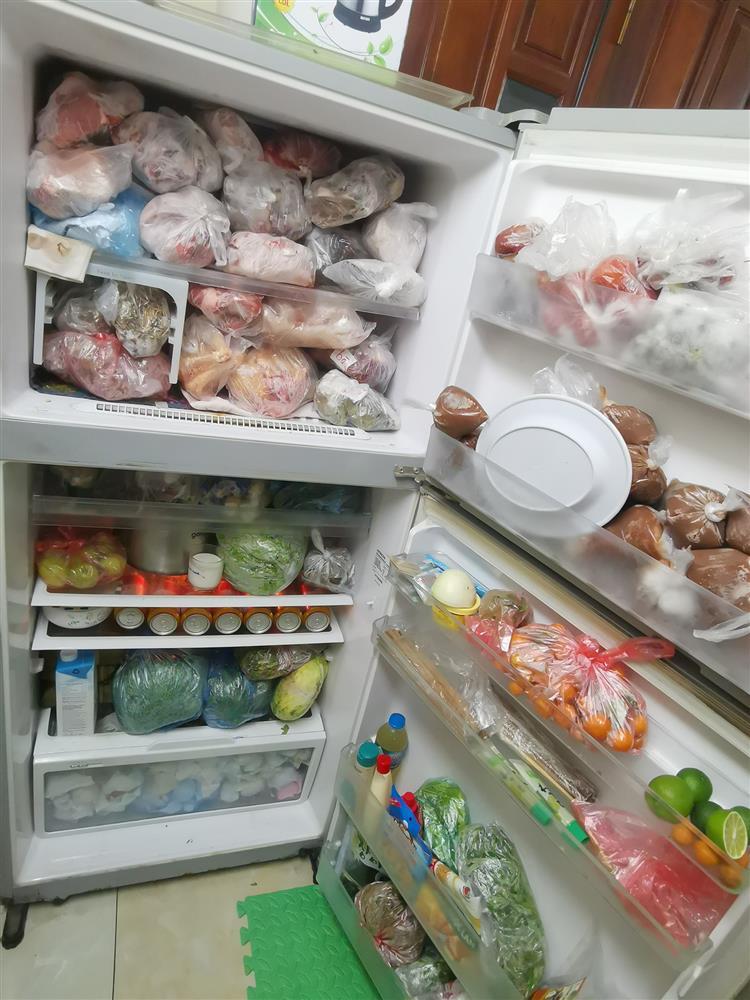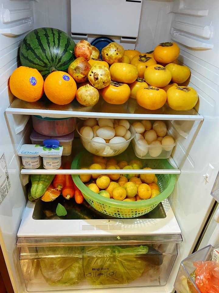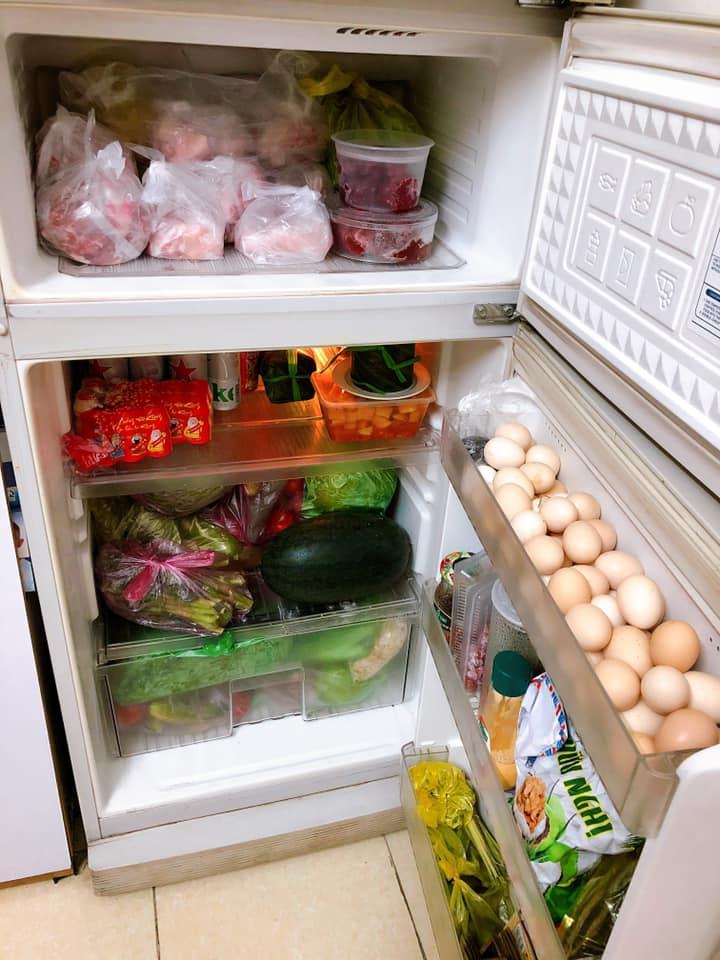 "Vẫn đầy nhé", Hằng Nguyễn nói. Cô còn cho hay, hiện khó có thể lấy đồ ăn ra vì chẳng phân biệt nổi loại nào thịt gì vì người nhà cứ thấy đồ ngon là mua lấy mua để.
