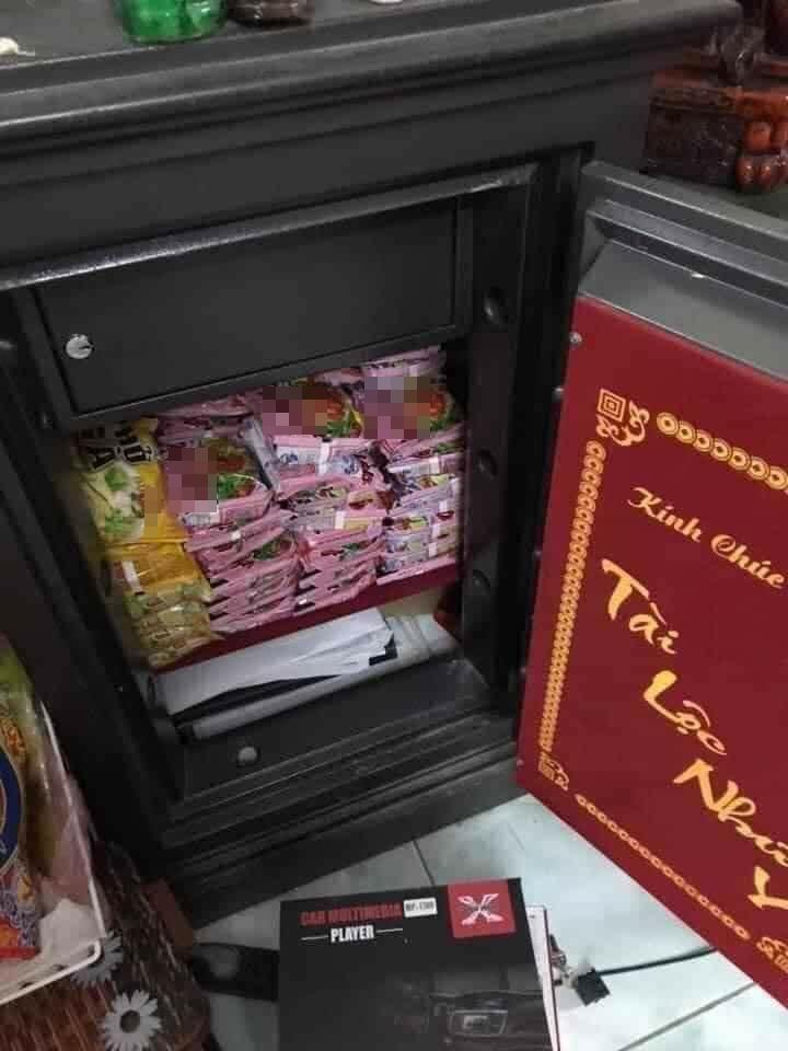 Két sắt xưa nay vốn được sử dụng cho việc cất giấu của cải vật chất giá trị, nhưng tại nhà anh chàng Nguyễn Trọng Hiếu lại chỉ là nơi trữ mì tôm và phở gà.