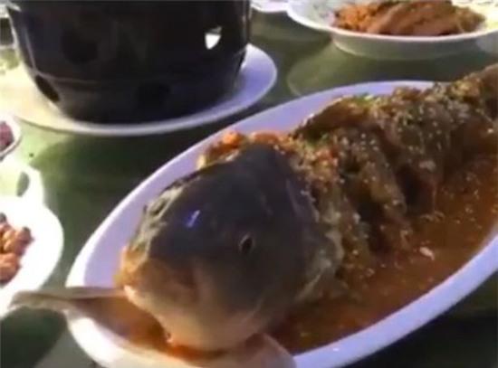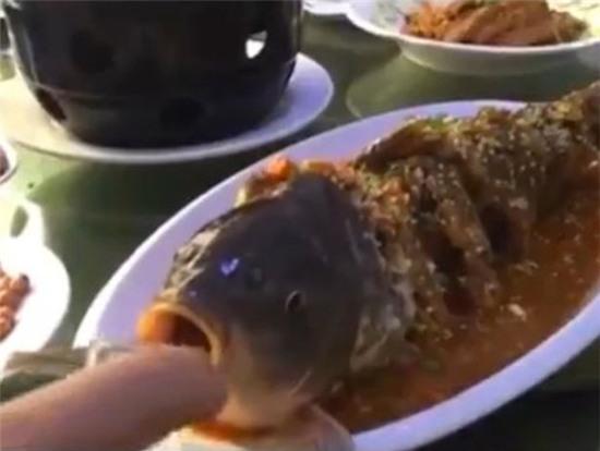 Không ai nghĩ rằng một con cá đã được nấu chính, mang lên bàn ăn vẫn có thể mở miệng ra uống rượu.
