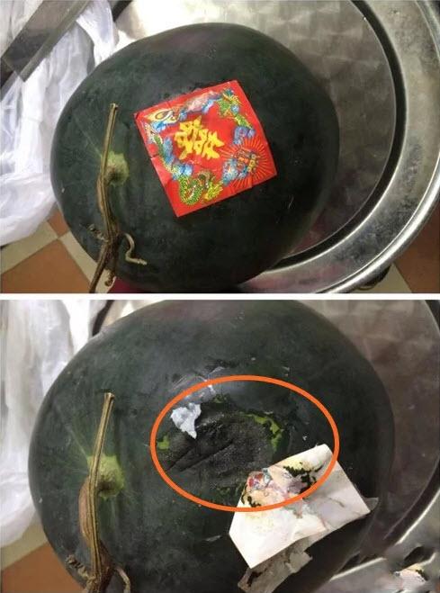Nhìn quả dưa thì ngon mà ẩn dưới lớp tem lại thối nẫu
