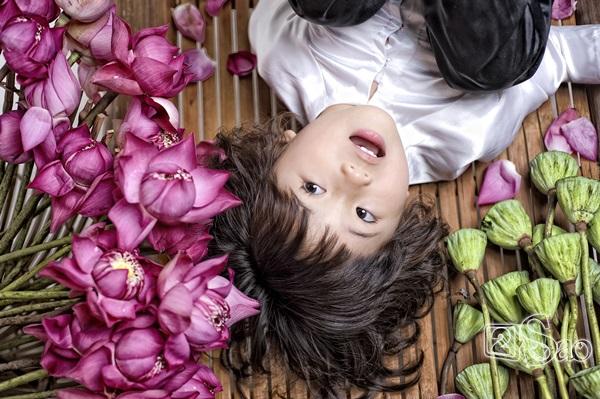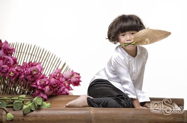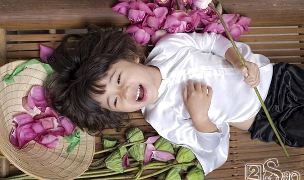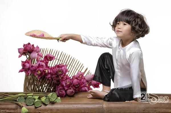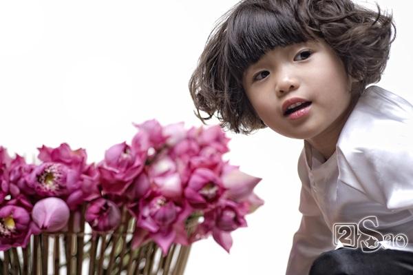 Vốn yêu thích hoa sen, mới đây “bà già” Thúy Nga đã cho bé Nguyệt Cát thực hiện một bộ ảnh như “phiên bản nhí” của mình khi mặc áo bà ba chụp cùng hoa sen. Cô bé Nguyệt Cát đã thể hiện những shot hình vô cùng dễ thương.