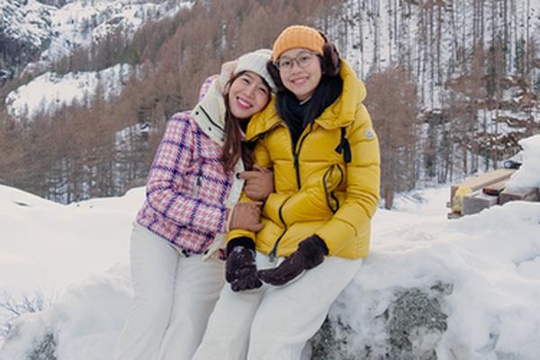 Ngay từ khi còn bé, cô gái sinh năm 2011 đã được mẹ tạo điều kiện cho tham gia trải nghiệm nhiều hoạt động thực tế. An Nhiên và mẹ thường xuyên có những chuyến du lịch nước ngoài, có chung niềm đam mê lớn với bộ môn trượt tuyết (Ảnh: FBNV).