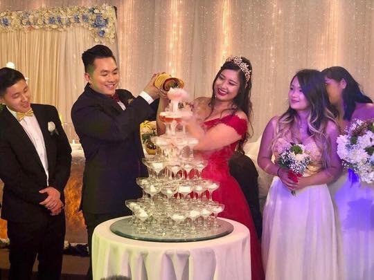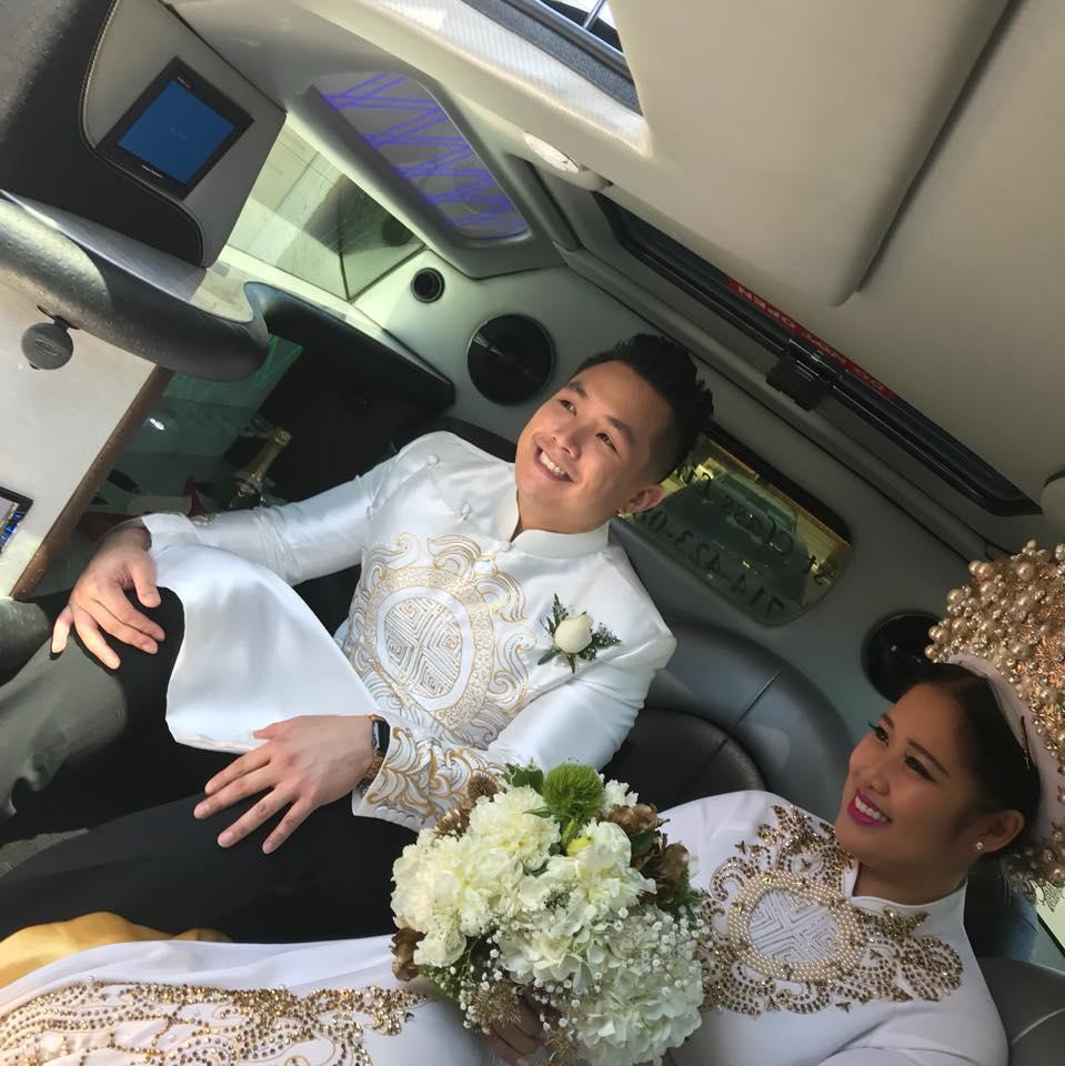 Xí Ngầu và ông xã Việt Kiều trong ngày cưới.