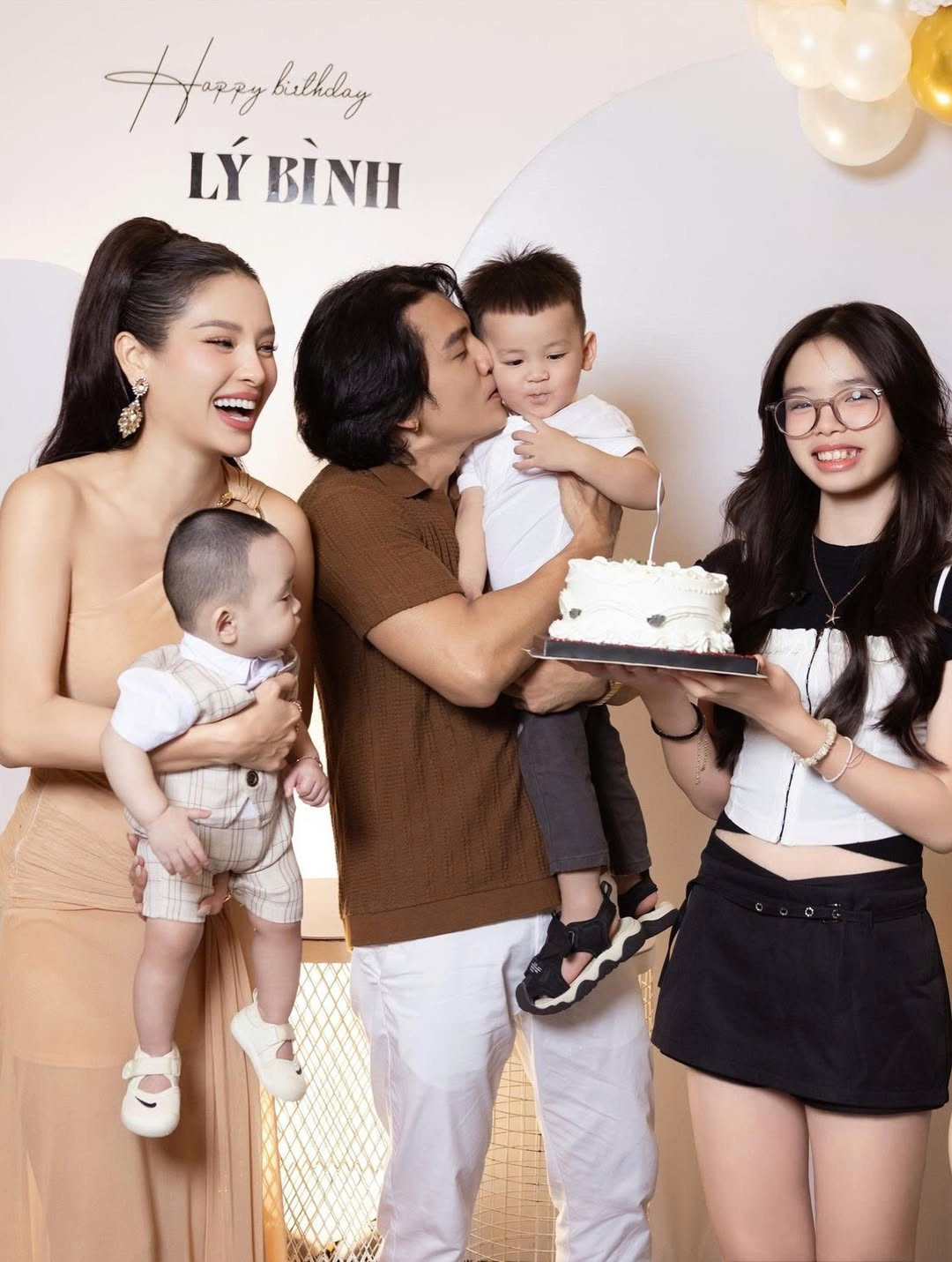 Mới đây, trên trang cá nhân, Phương Trinh Jolie chia sẻ loạt ảnh mừng sinh nhật tuổi 34 của ông xã. Cả gia đình có buổi tiệc sinh nhật ấm cúng với đầy đủ các thành viên "đủ nếp đủ tẻ".Cả nhà lên đồ đồng điệu với dresscode nâu - be - đen -trắng. Đáng chú ý, trong khung hình, chủ nhân bữa tiệc gây sốt vì diện mạo có phần lạ lẫm.Anh để tóc dài lãng tử, gương mặt có phần hốc hác hơn trước. Có vẻ thời gian qua, Lý Bình đã sụt cân đôi chút.Ngoài ra, 3 con của Lý Bình - Phương Trinh Jolie cũng chiếm spotlight. Mia - con riêng nữ diễn viên ngày càng trổ mã lớn phổng, chiều cao đã gần bằng mẹ. Trong khi đó, hai quý tử Tyga (tên thật là Quan Kinh Luân) và Loka (tên thật là Quan Kinh Quân) sở hữu vẻ ngoài bụ bẫm, đáng yêu được mẹ lên đồ xịn sò.Công chúa Mia (tên thật Trần Thị Nam Phương) chụp ảnh chung khung hình cùng bố dượng cho thấy mối quan hệ cực kì thân thiết, gắn bó, không phân biệt con chung - con riêng.Vừa qua, tổ ấm nhỏ cũng vừa tận hưởng kì nghỉ hè ở biển cùng nhau. Phương Trinh Jolie và Lý Bình đã kết hôn vào tháng 4/2022. Trước khi có tổ ấm viên mãn như hiện tại, Phương Trinh Jolie từng trải qua quãng thời gian dài làm mẹ đơn thân. Người đẹp 8X bật mí sau 5 năm tìm hiểu, cô mới tính đến chuyện lập gia đình với Lý Bình.Vừa qua, cặp đôi đã tổ chức tiệc kỉ niệm 3 năm ngày cưới ở Thái Lan. Đăng kèm bộ ảnh, Phương Trinh nhắn nhủ bạn đời: "Cảm ơn anh đã nắm tay em bước qua những ngày tháng không chỉ có nắng mà còn mưa. Ba năm không phải cột mốc mà là minh chứng cho hành trình có nhau - đủ đầy yêu thương, sẻ chia và trưởng thành".Trải qua nhiều sóng gió, cuối cùng, Phương Trinh Jolie cũng tìm được "bến đỗ" bên chồng trẻ kém 3 tuổi, tận hưởng cuộc sống viên mãn, hạnh phúc khiến nhiều người ngưỡng mộ.