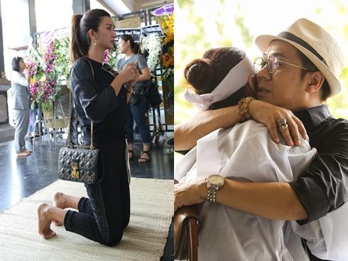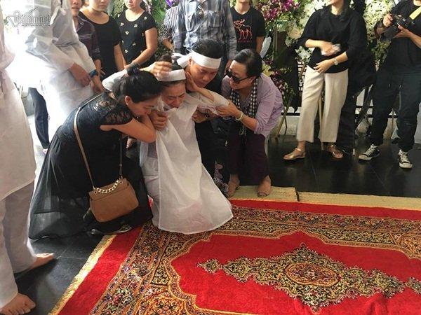 Ba mẹ con ôm nhau khóc trước linh cữu cố nghệ sĩ Thanh Hoàng.