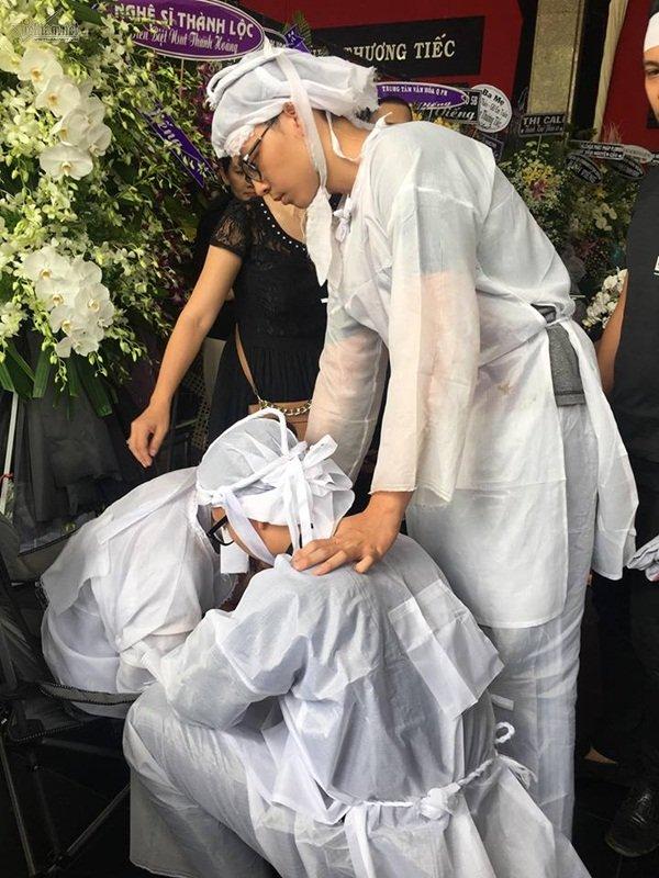 Con trai cả cố nghệ sĩ Thanh Hoàng được người nhà mặc áo tang.