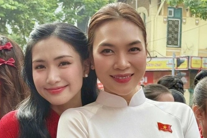 Theo đó, nữ ca sĩ thông báo tin vui được nhận huy hiệu Bác Hồ. Người đẹp đưa cả nhà đi thắp hương tại di tích Nhà 67 và thăm quan Khu di tích Chủ tịch Hồ Chí Minh.