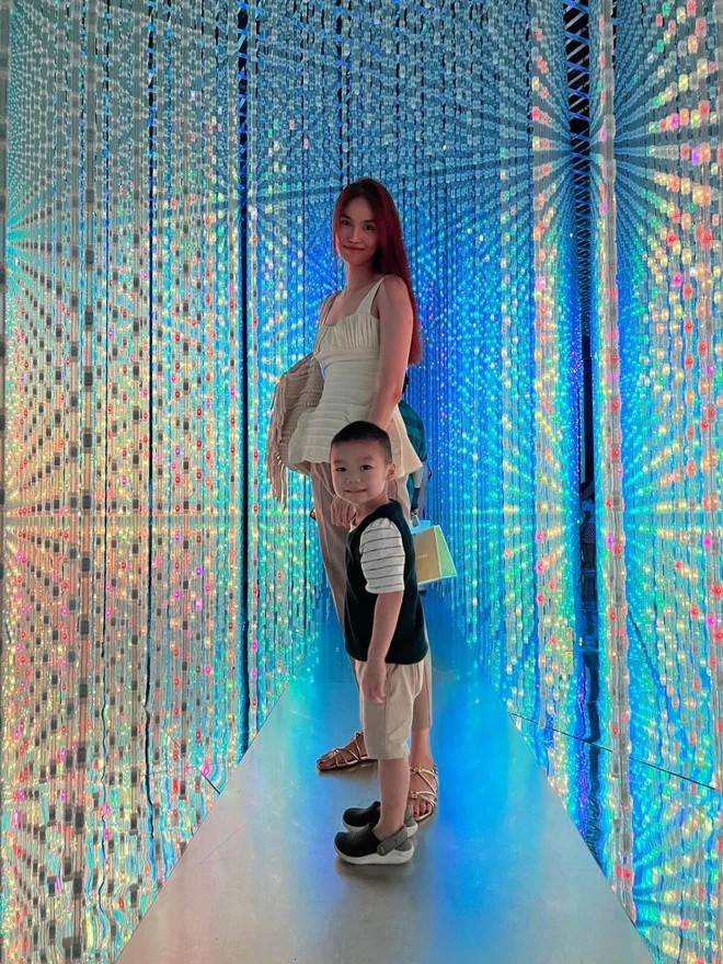 Dung mạo của quý tử nhà Lan Khuê cũng hiếm hoi lộ diện. Theo đó, mới ngày nào còn là nhóc tỳ bé nhỏ trong vòng tay mẹ mà nay con trai Lan Khuê đã lớn bổng, ra dáng cậu ấm chuẩn con nhà giàu.