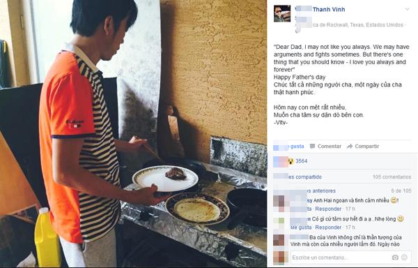 Nhân ngày của cha, mới đây con trai ruột tin đồn của Hoài Linh - Thành Vinh hân hoan chia sẻ khoảnh khắc bố vào bếp cùng dòng nhắn nhủ đong đầy tình yêu thương gửi tới người cha kính yêu: "Dear Dad, I may not like you always. We may have arguments and fights sometimes. But there's one thing that you should know - I love you always and forever". Happy Father's day. (Tạm dịch: Bố kính mến! Con luôn luôn tỏ ra không hài lòng với bố, đôi khi con hay tranh luận với bố. Tuy nhiên, có một điều mà con muốn bố biết rằng dù có điều gì xảy ra đi chăng nữa, bố là người mà con luôn tin yêu. Chúc bố ngày lễ vui vẻ. )