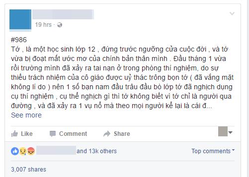 Trên diễn đàn nội dung đăng tải như sau: "Tớ là một học sinh lớp 12, đứng trước ngưỡng cửa cuộc đời và tớ vừa bị đoạt mất ước mơ của chính bản thân mình.