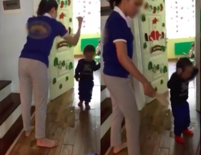 Trước đó, clip ghi lại hình ảnh một số bé trai tại trường mầm non bị cô giáo dùng dép đánh vào đầu, nhéo tai... được chia sẻ lên mạng xã hội khiến cộng đồng mạng, đặc biệt các bậc phụ huynh vô cùng bức xúc.