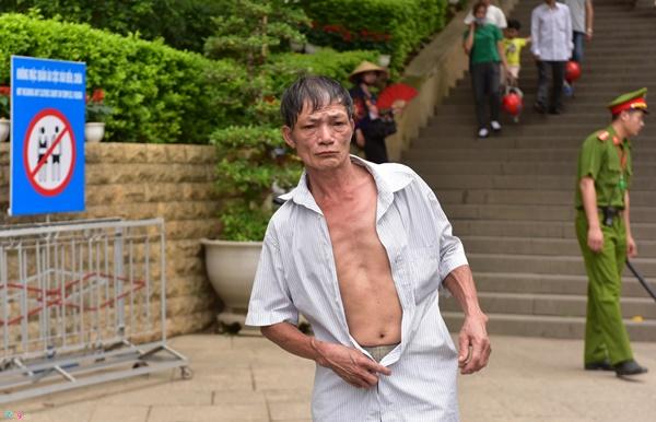 Nhưng lực lượng công an chỉ kiểm soát lối vào cổng. Nhiều người sau khi tham quan đền xong liền cởi phăng cúc áo.