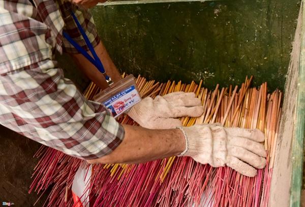 Mỗi ngày, lượng hương nhổ bỏ ở cổng Đền Hùng chất đầy 5 thùng rác lớn. Ông Tám và những người cao tuổi khác phải chuyển sang bao tải chuyển đi. Ông Tám ước tính số hương bị vứt bỏ trong 3 tháng mùa xuân tại Đền Hùng có thể lên đến hàng trăm tấn.