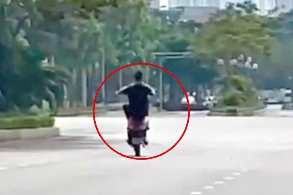Trong quá trình di chuyển, người này bất ngờ thực hiện hành vi "bốc đầu" khi xe vẫn đang chạy, tiềm ẩn nguy cơ tai nạn giao thông nghiêm trọng.