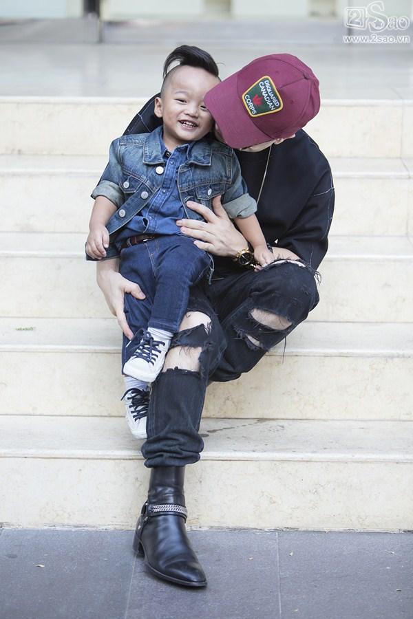 khoảnh khắc hạnh phúc giữa hai bố con nhà thiết kế họ Đỗ trên phố đông