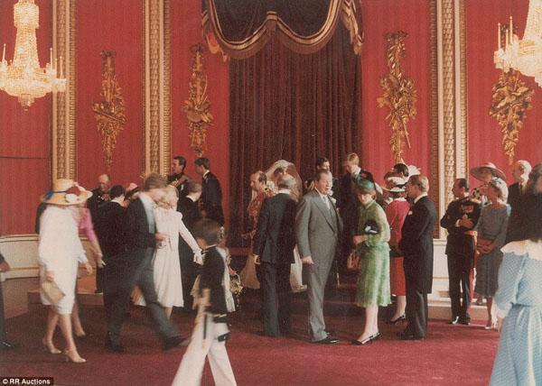 Công nương Diana (phía sau) đứng cạnh chồng khi các thành viên gia đình Hoàng gia cùng tập trung về phòng Throne - căn phòng chuyên sử dụng để diễn ra các nghi lễ ngoại giao ở điện Buckingham