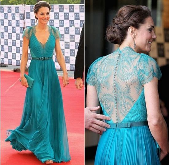 Đầm xanh xẫm thắt eo được công nương mặc trong buổi tiệc năm 2014