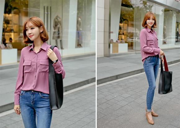 Bộ đôi áo sơ mi kết hợp quần jeans luôn khơi gợi cho bạn vẻ đẹp trẻ trung, năng động và hiện đại. Dù là áo sơ mi trắng, kẻ sọc hay sắc màu khi mix với quần jeans, bạn đều khiến đồng nghiệp phải hài lòng về diện mạo của mình. Tuy nhiên, nên chú ý kĩ càng, nếu vòng một lép, bạn hãy chọn áo sơ mi có túi trước ngực, gam màu sáng. Vòng ngực lớn thì bạn nên tạo cảm giác ảo về sự nhỏ nhắn qua những mẫu áo sơ mi tối màu.