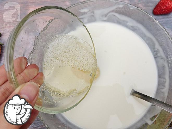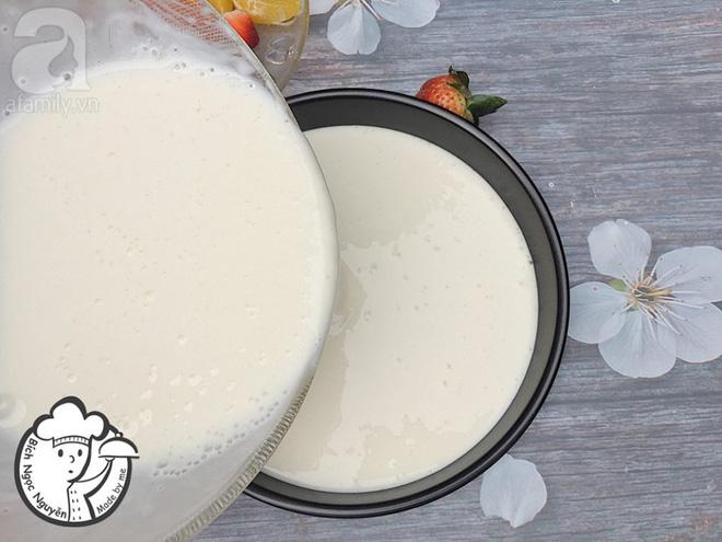 Đổ hỗn hợp sữa chua gelatine vào khuôn.