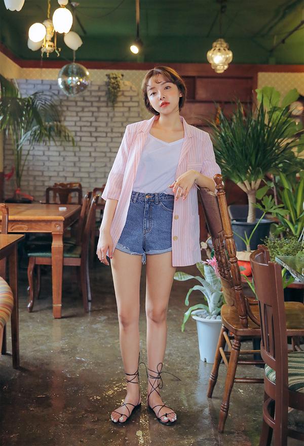 Khi diện áo phông trắng với quần shorts, bạn có thể mặc thêm chiếc áo blazer hồng