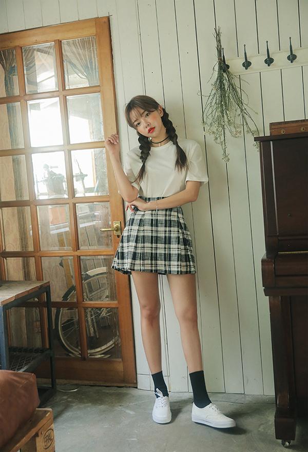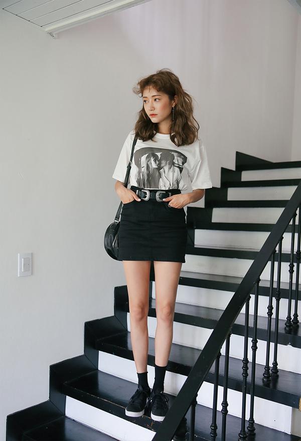 Dáng người mảnh dẻ thì hãy sơ vin áo phông trắng và chân váy mini đen, bạn sẽ sở hữu