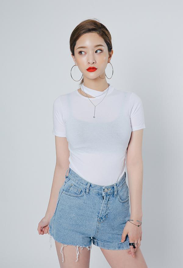 Áo phông trắng cũng có kiểu dáng phá cách, mang hơi hướng chocker sành