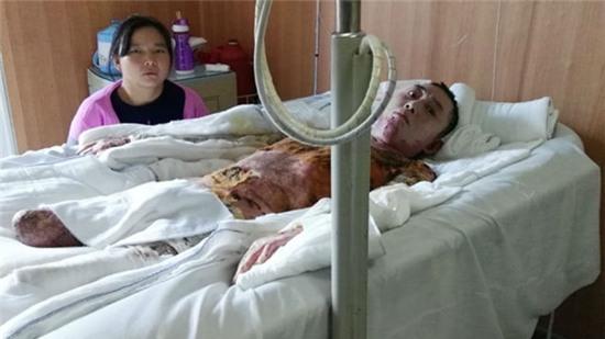 Anh Longhua bị bỏng nặng đến 99% cơ thể và bị cưa mất chân phải sau vụ tai nạn kinh hoàng.