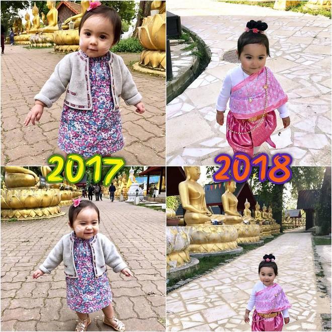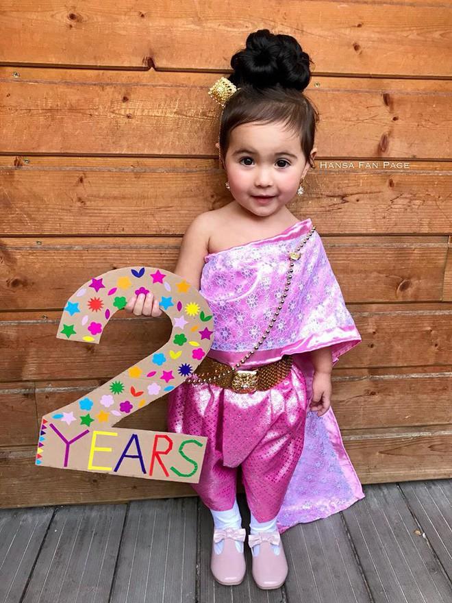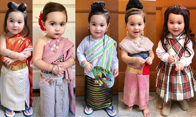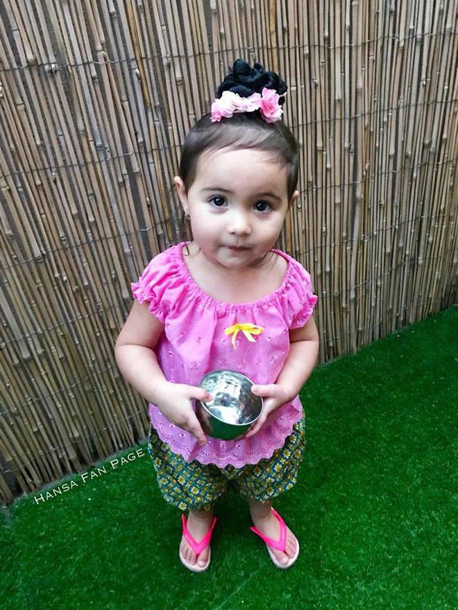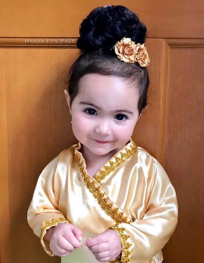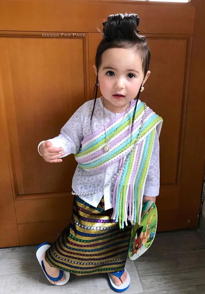 Nhìn vào bức ảnh chụp chung của cả gia đình, người xem có thể dễ dàng nhận ra "thiên thần nhí" được thừa hưởng rất nhiều nét đẹp với sống mũi cao của bố, gương mặt bầu bĩnh và đôi mắt to tròn từ mẹ. Chị Lufthansa cho biết, ngay từ nhỏ đã cho Hansa mặc đồ truyền thống của người Thái để con gái không quên cội nguồn.