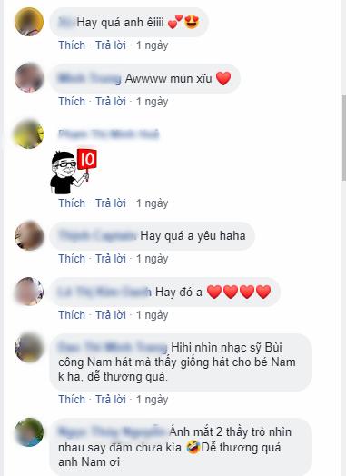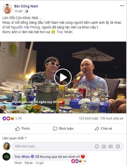 Mới đây, người hâm mộ không khỏi phấn khích khi Bùi Công Nam đăng tải một đoạn clip ghi lại khoảnh khắc anh và thầy của mình là nhạc sĩ Nguyễn Hải Phong say sưa thể hiện Lớn rồi còn khóc nhè – bản hit mới nhất của ca sĩ Trúc Nhân. Đặc biệt, anh còn cẩn thận xin lỗi chủ nhân ca khúc vì lỡ “làm bài hát hơi vui”.