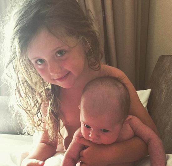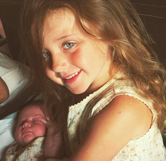 Cô bé để tóc dài, nét mặt thanh tú, xinh xắn như thiên thần khi bế cô em Liberty Rose lúc mới sinh mùa hè năm ngoái.