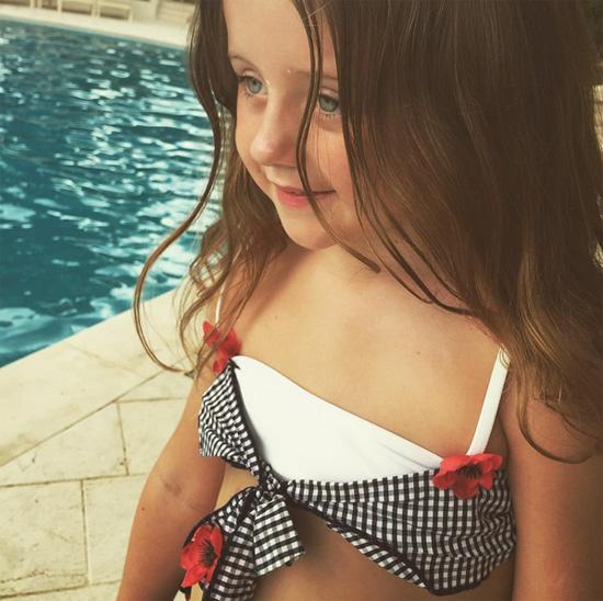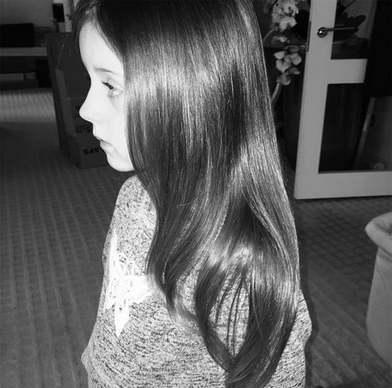 Cô nhóc có mái tóc dài suôn mềm giống mẹ.