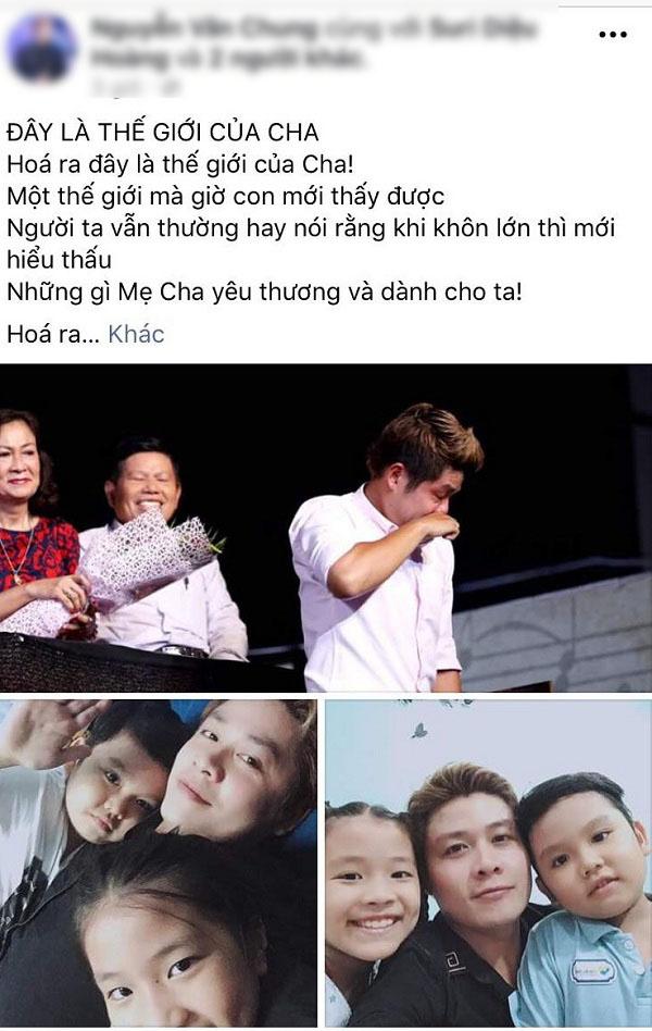 Còn với nhạc sĩ Nguyễn Văn Chung, anh cho rằng ngày hôm nay cũng như những ngày bình thường: 'Đối với mình, Ngày của Cha chỉ là một dịp để gửi lời yêu thương đến Cha mình còn tình cảm mình dành cho Cha, cho Mẹ là điều mà mỗi ngày mình phải tự ý thức được!'