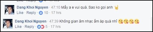 Đã có hơn 5.000 lượt bình luận trên phần livestream này. Ngay cả chủ nhân của các hit trên cũng tham gia buổi "phát sóng trực tiếp" và bày tỏ mong muốn đồng ca cùng 3 nghệ sĩ.