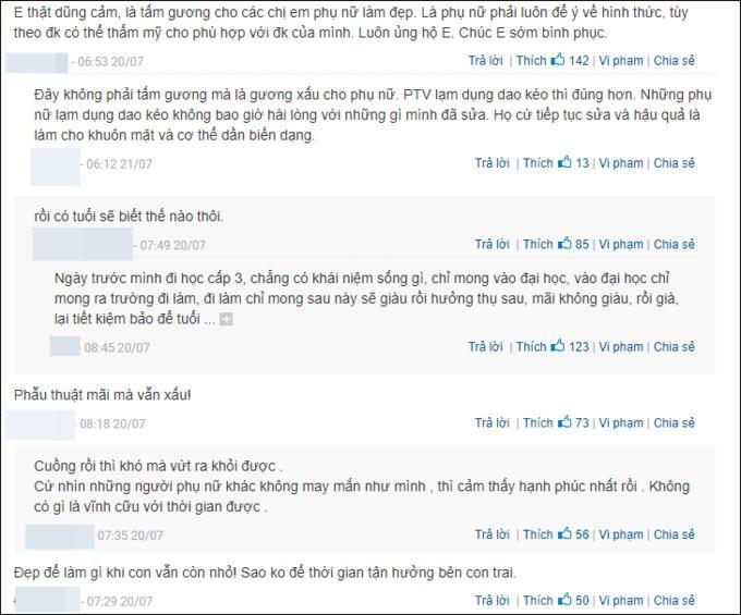 Có rất nhiều ý kiến trái chiều từ dư luận, nhiều người cho rằng Phi Thanh Vân đang quá lạm lụng và "nghiện" phẫu thuật thẩm mỹ.