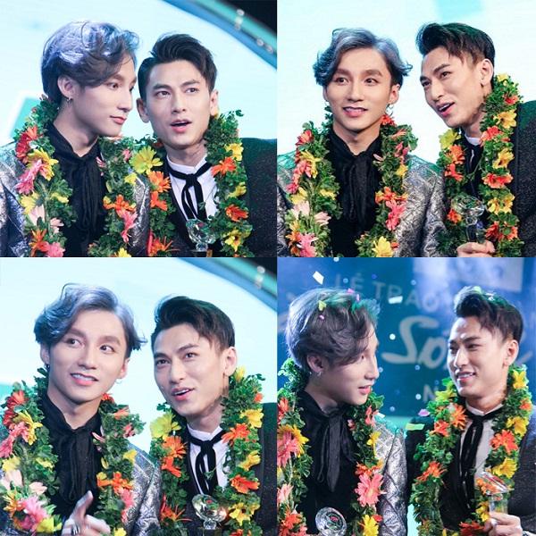 Isaac luôn chủ động khoác vai Sơn Tùng giữa sân khấu lạc lõng.