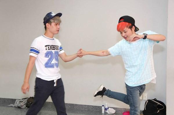 Thanh Duy nhảy chân sáo, nắm tay Đại Nhân trong phòng tập.