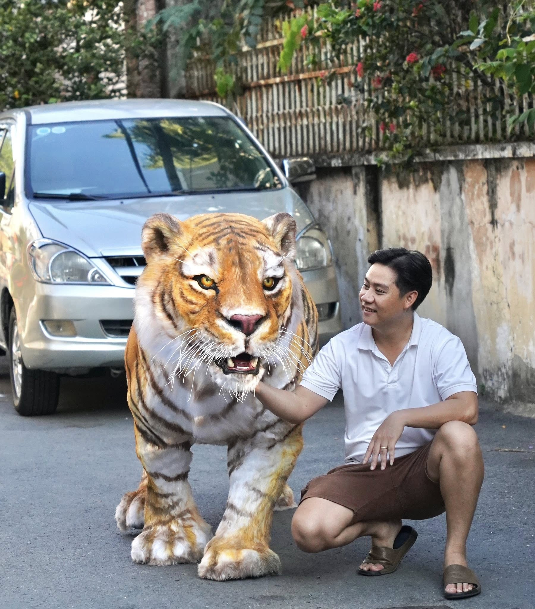 Theo tìm hiểu được biết, con hổ trên là sản phẩm mô hình của họa sĩ Võ Đức Dự (SN 1995, quận Bình Thạnh, TP.HCM). Chia sẻ về tác phẩm độc đáo của mình, anh Dự cho biết mô hình này được làm theo tỷ lệ 1:1 với hổ Bengal – loài hổ đặc trưng của Ấn Độ.
