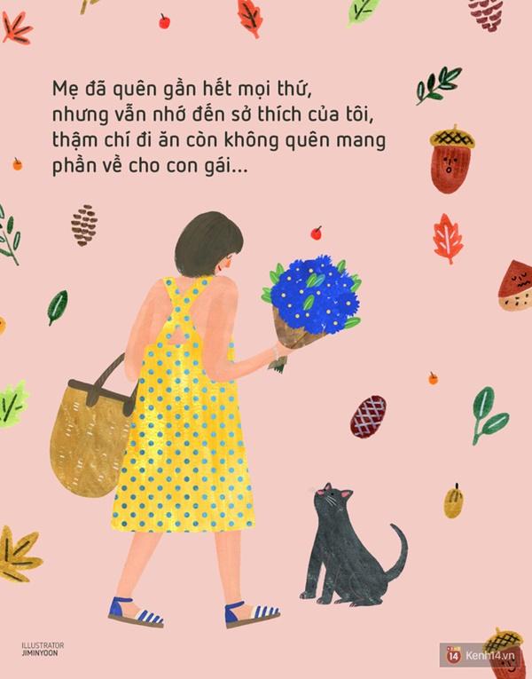 Khi đó, nước mắt tôi đột nhiên lăn dài trên gò má. Từ lúc bé xíu tôi đã thích ăn sườn xào chua ngọt. Mẹ đã quên gần hết mọi thứ, nhưng vẫn nhớ đến sở thích của tôi, thậm chí đi ăn còn không quên mang phần về cho con gái…