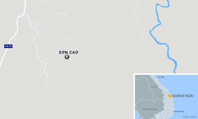Làng Trá, xã Sơn Cao, huyện Sơn Hà (Quảng Ngãi), nơi ông Trai cưa bom tử vong. Ảnh: Google Maps