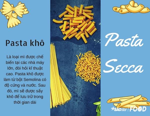 Tuy nhiên, để cho đơn giản, chúng ta chỉ cần biết có hai hình thức cơ bản là Pasta Secca là loại mì khô còn Pasta Fresca thì dùng gọi tên mì tươi.