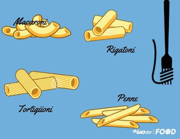Tiếp đến là Pasta hình ống, mà người Việt chúng ta tóm gọn trong một từ để gọi, nui. Tất tần tật những loại mì có dạng ống từ to, tròn, bé, dẹt, có quai vạt, có vân,… đều được liệt kê vào dòng này.