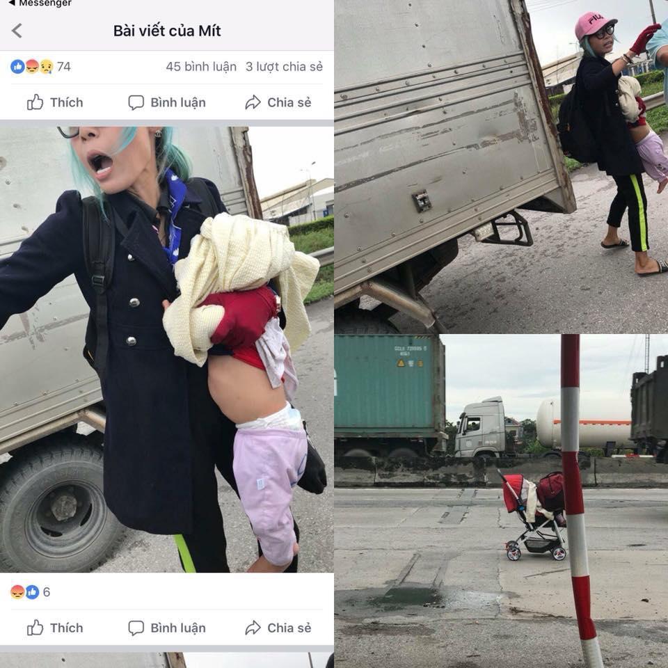 Theo những hình ảnh ghi nhận được, "hot girl quỵt tiền" liên tục tha lôi con chưa được 1 tuổi đi giữa trời nắng, phả hơi thuốc vào mặt con, để mặc đứa bé kêu khóc khi bụng đói, thậm chí trên mắt của bé xuất hiện vết bầm tím.