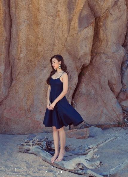 Chiếc đầm đã giúp Hoa hậu Việt Nam 2016 tôn lên nước da trắng và vóc dáng mong manh nơi biển vắng.
