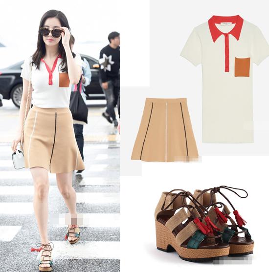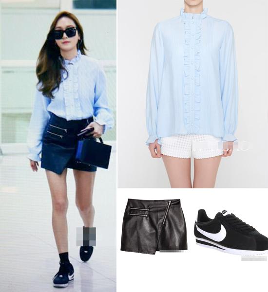 áo sơ mi của thương hiệu riêng Blanc & Eclare, chân váy hiệu H&M giá bình dân