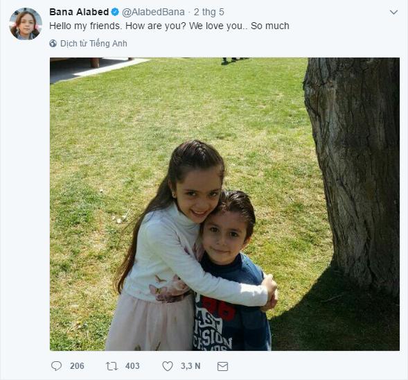 "Mọi người đang chết dần và cháu không biết chuyện gì sẽ xảy ra tiếp theo", Bana chia sẻ trong một thông điệp trên Twitter. "Bom cứ như mưa rơi".