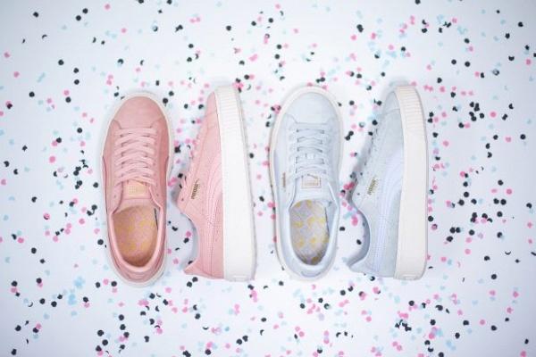 Thiết kế giày đơn giản với phần thân bằng chất liệu da lộn bề mặt nhám được in logo thương hiệu Puma màu vàng bắt mắt, sang chảnh trên nền đế trắng. Dù chỉ giới hạn bởi 2 sắc màu nhưng các tín đồ thời trang có thể mở rộng phạm vi mua sắm hơn thay vì chỉ có lựa chọn duy nhất từ Converse trong cùng màu pastel.