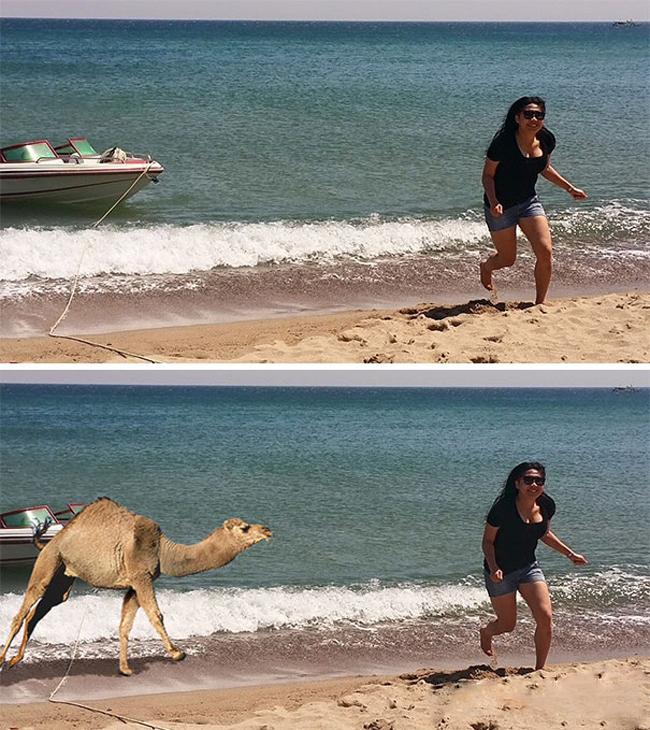 Hóa ra là bị lạc đà dưới biển lên đuổi cho bỏ chạy.