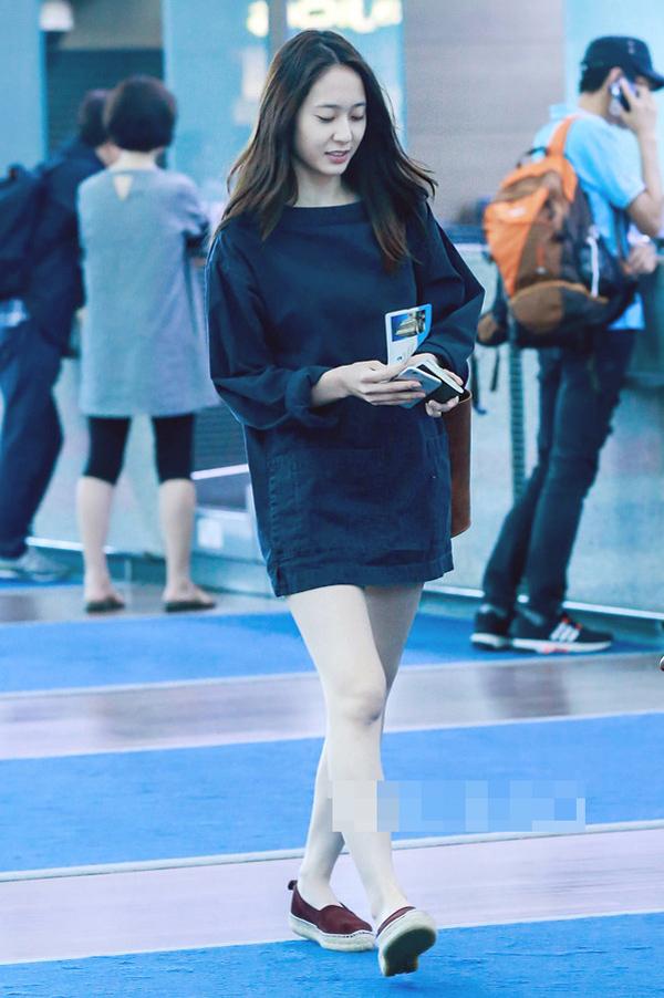 Hyoyeon (SNSD) mặc áo denim dây hiệu Eyeye, túi hiệu Wayuu và xăng đan