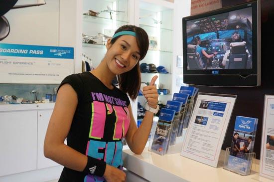 Diệp Lâm Anh tạo dáng trong lúc quan sát Thu Hiền vượt rào thử thách làm phi công