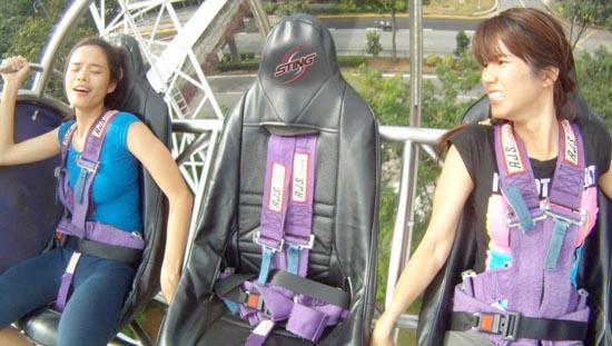 Nhan Phúc Vinh, Linh Chi chuẩn bị sẵn sàng để chinh phục độ cao 60m với trò nhảy Bungee.